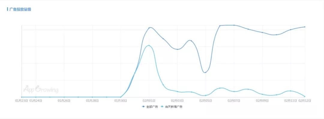 App Growing的数据显示,2020年春节期间(1月24日~1月30日),移动广告投放数在持续走低,直到2月3日才有所上涨。