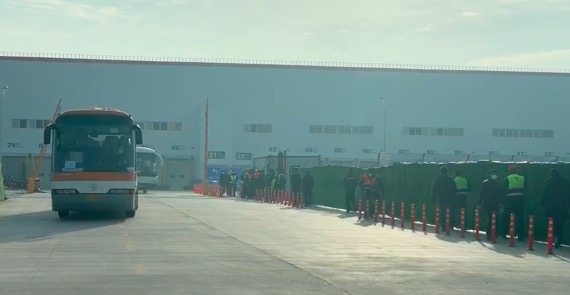 上午7点50分左右,载着员工的大巴开始驶入特斯拉厂区。记者目测到,大巴以单人座方式运送员工,相信此举是为了尽可能避免潜在的交叉感染。