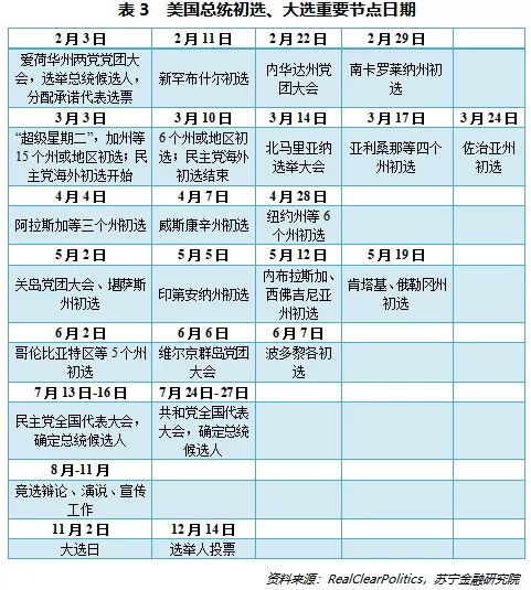 从美国大选的进程来看(见表3),决定布蒂吉格命运的将是2月11日新罕布什尔的初选和3月份的超级星期二。
