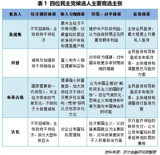 尽管在两党全国代表大会确定了总统候选人之后,候选人才会制定和讨论通过总统竞选纲领,并公布于众。但各位候选人的主张早已在多次辩论、演说中得到大力传播(见表1)。