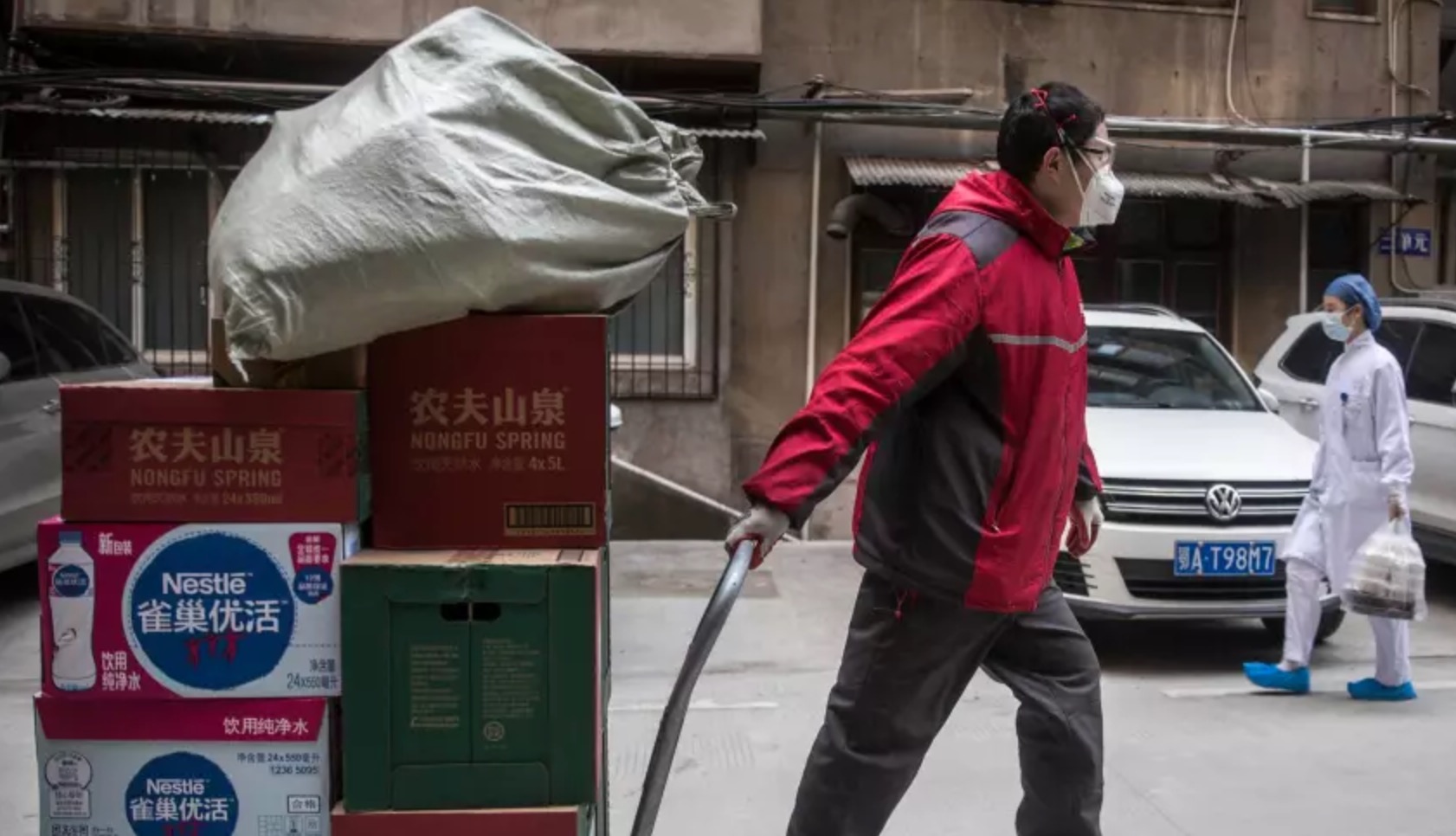 面对医院,面对众多确诊的患者,他们真的不害怕吗?有京东工作人员告诉我们,小哥也是普通人,而且很年轻,他们也会害怕,只是更多源于一种责任和担当,还在坚持送货。