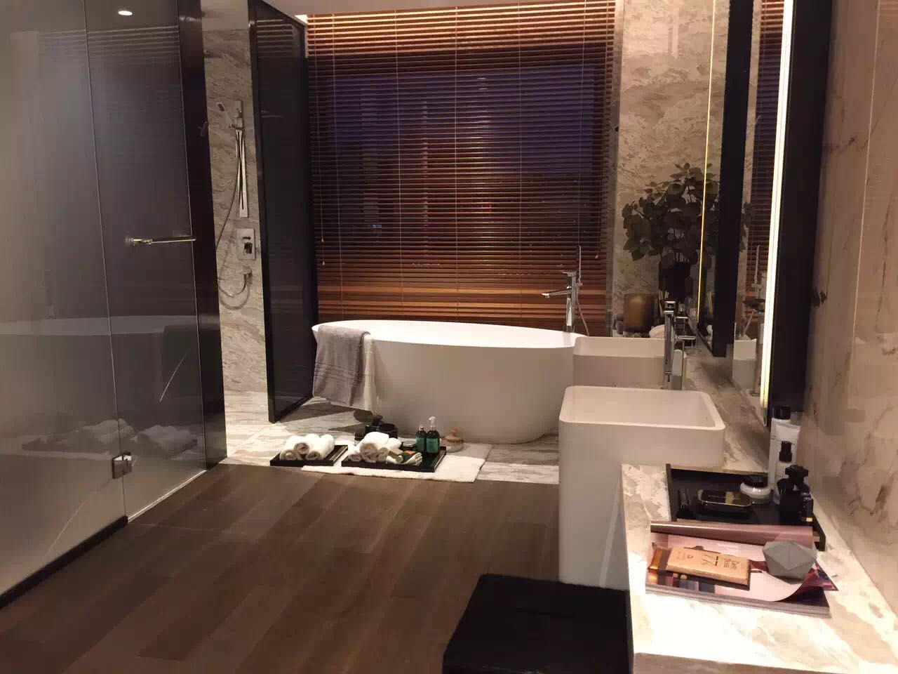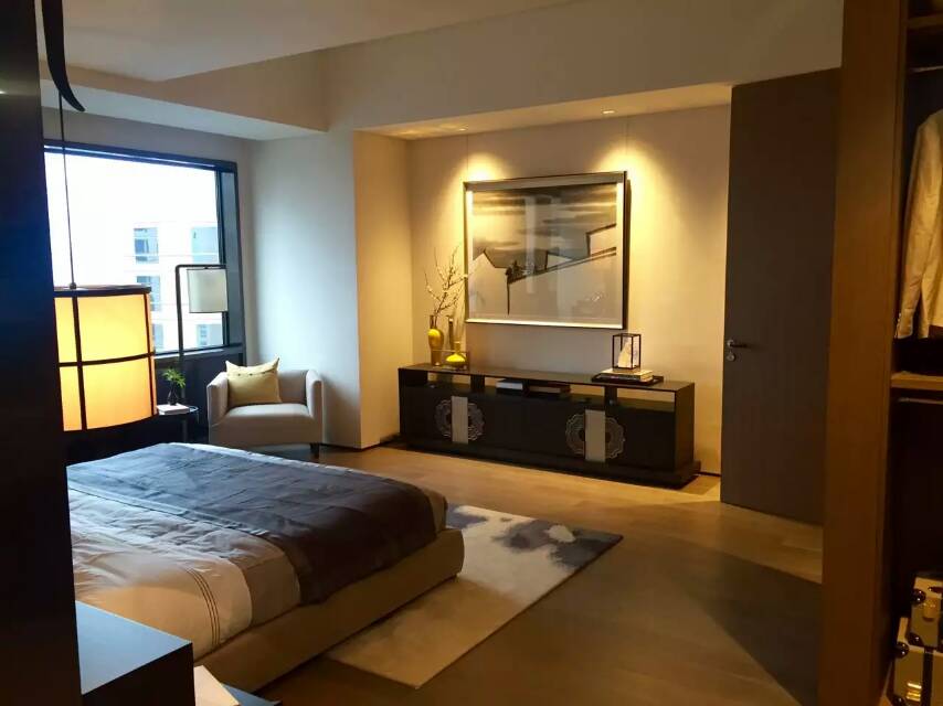 在房间设计上,梵悦108与其他豪宅奢华鲜艳的装饰不同,整个项目采用昂贵石材与纯木中式装修风格,尽管是公寓产品,但其内部尺度感十足,在夜间,室内的平静色调会和窗外国贸CBD的璀璨夜景形成鲜明对照。