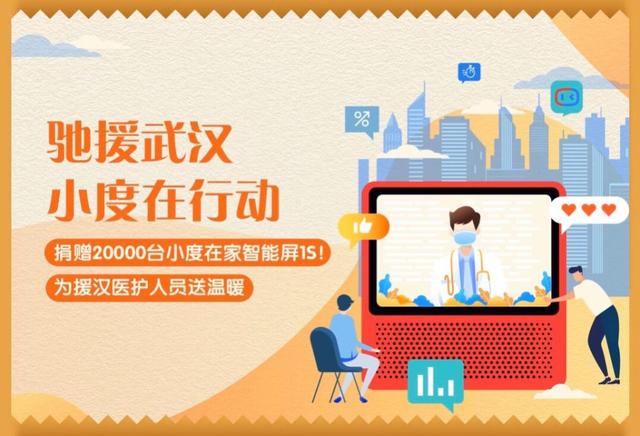 百度旗下人工智能助手小度,用科技力量助力防疫工作。1月30日,小度上线为所有驰援武汉的医护人员家庭免费赠送一台小度在家智能屏的捐助活动,并响应热心网友呼吁,开通个人捐赠窗口。小度总计捐赠的20000台智能屏,为医护人员和家人搭建起沟通的桥梁,尤其让家中有老人或孩子的家庭,可以随时通过视频通话保持联系,以实打实的产品守护他们的家。