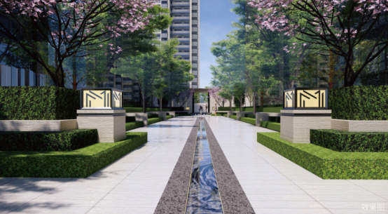 艺术园林,约8000㎡景致:内部景观从法国皇家住宅玛利酒庄、印第安纳州米勒花园、具有抚慰心灵力量的治愈系色彩和蒙德里安的经典画作 Composition 系列中获取灵感,建筑与自然交相辉映,无不折射出理想人居的独特格调。