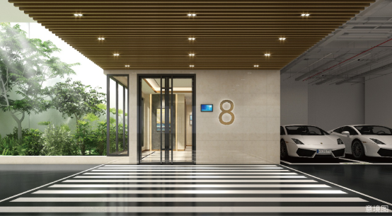 艺术车库,下沉式花园:人性化设计,为地下停车场打造天井花园,打破传统地下车库潮湿、阴暗、封闭之感,引入自然光线与植物点亮视野,加速室内外空气流通,给归家别有洞天的舒畅之旅,都会美学生活图景于此徐徐开卷。