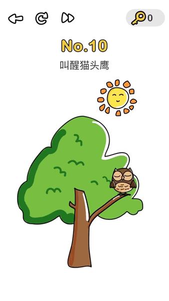 而在第10关,要叫醒一只沉睡的猫头鹰,点击屏幕没有任何效果,需要拖拽太阳到屏幕之外,因为猫头鹰到晚上才会醒来。