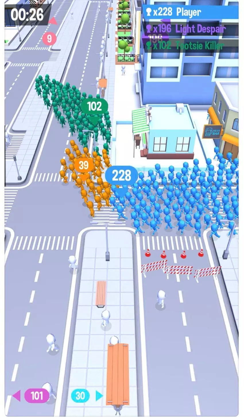 所谓超休闲游戏(Hyper Casual Games),是法国游戏公司Voodoo率先使用的概念,用以指代他们开发的如《黑洞大作战》、《拥挤城市》等一系列轻量化、卡通化、及时性强的休闲游戏。目前,在全球的手游市场中,轻量化的超休闲游戏正极速挤占以竞技、交战、经营为主题的重度手游的市场。App Annie的数据显示,2017年免费榜Top 30游戏中,只有4款是超休闲游戏,下载量占Top 30游戏总下载量的11%,到2019年,近一半(14款)都是超休闲游戏,下载量所占份额接近50%。