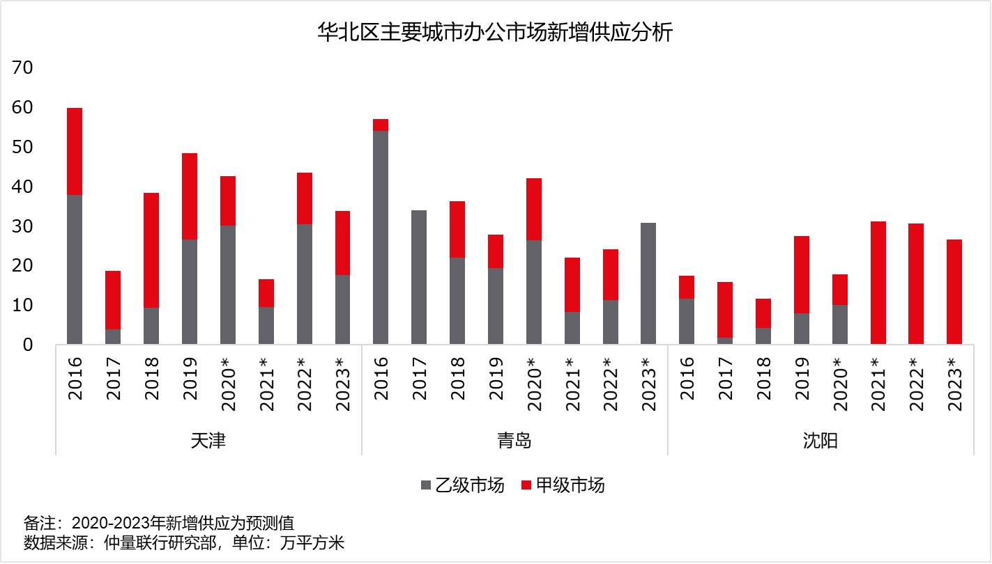 虽然地产项目的开发进度受劳动力复工推迟以及上下游原材料供应影响,将出现不同程度的工程延误,延误周期预计有望控制在一两个季度以内,短期因工程进度导致的延误对市场整体开发节奏影响有限。在天津市场,2019年多个项目延迟交付推高今年的新增供应总量至42.8万平方米,仍处于供应高峰期。因此,预计2020年天津办公市场仍将面临较大的供给压力;在青岛市场,除部分超高层甲级办公项目外,核心商务区在建工程数量已明显回落,2020年即将交付的新增供应体量中42%的项目已基本完成建设施工,因此疫情带来的延误对青岛办公市场整体开发节奏影响有限;在沈阳市场,2020年迎来新增供应放缓其,但由于疫情削弱市场需求,项目前期租赁压力加重,预租面积或低于预期。而在2021-2023年,市场仍将持续迎来供应高峰。因此,本次新冠疫情带来的影响是短期的供需调整,并不会造成沈阳办公市场新增供应量的大幅回落,供过于求的状态仍将延续。
