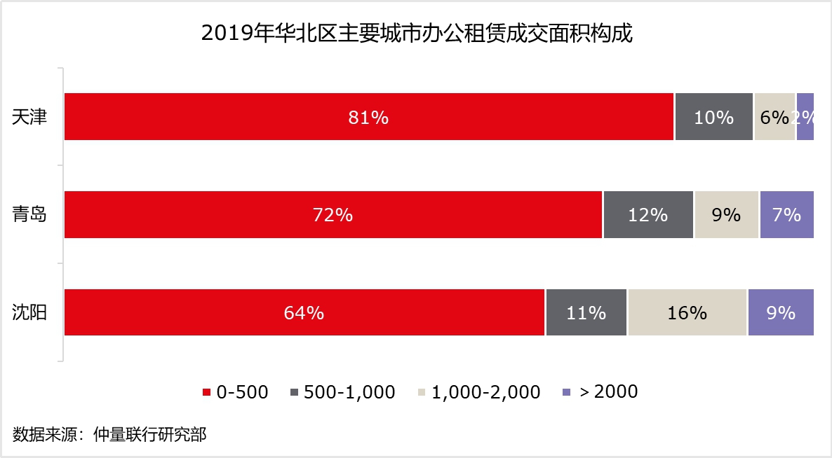 超过一个季度的现金流压力将给小微民营企业带来不可逆转的创伤。在华北区主要的办公市场上,500平米以下所代表的中小企业始终是租赁需求的主要来源,在2019年天津办公租赁成交中的占比甚至高达81%。来自于当地政府切实可行的支持性政策,例如降低/减免税费、成本补贴等有利于帮助中小企业缓解成本支付压力。而各行业中的头部企业因较强的抗风险能力及海外市场布局,有望平稳渡过难关,支撑后续办公市场平稳发展。