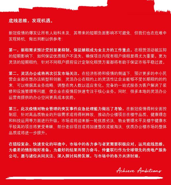 业主普遍认为本次疫情对市场影响程度较深,对全年租金预期或将进一步下调。