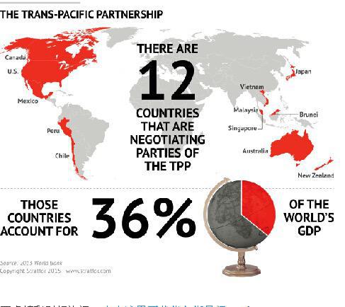 TPP原名亚太自由贸易区,意思是促进亚太地区的贸易自由化,是个没那么大的事情。但随着谈判成员渐渐增加,美国在2008年2月宣布加入,并且将成员国扩展到12个。10月5日,这12个谈判国达成基本协议,同意进行自由贸易,并在投资及知识产权等广泛领域统一规范,一个占全球4成的巨大经济圈因此应运而生。日本、墨西哥都是其中的成员。不要小看墨西哥,他的制造业可不是一般的强。