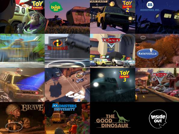 这14个标注,分别是皮克斯前14部电影的发生地。