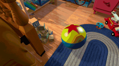 这个黄底蓝边,中间有颗五角星的彩球,出自皮克斯的第一部短片《顽皮跳跳灯》。