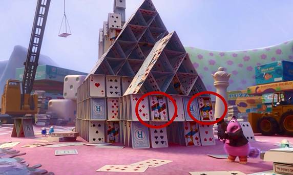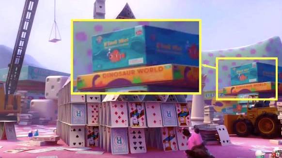 “纸牌屋”旁边,一个盒子上写着“找找我”(Find Me),盒子上的小丑鱼,正是《海底总动员》的尼莫。