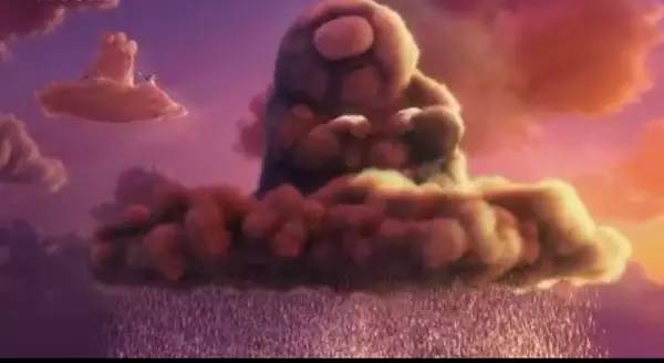 《头脑特工队》中,忧忧从云朵镇扯下一块云,坐着边哭边飞走。