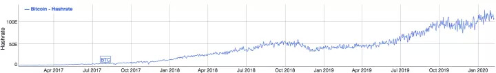 回顾比特币全网算力,明显趋势就是上涨,即便在 2018 年末比特币价格已经低到 3000 美金,全网算力也还要远大于 2018 年 1 月时的算力,相比于当时的最高点,算力只是下降了 30% 左右。