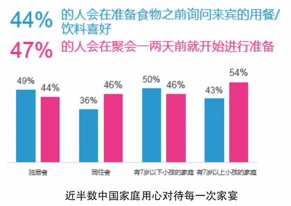 对应的,上篇提及的“厨房正变成一种社交空间”也在宜家的这份报告中有所体现。根据报告,57%的受访者平均每月至少举办一次家宴,其中武汉和广州的比例更是高达64%和61%。而在举办家宴时,大家也普遍很用心,不少人在准备食物前会询问来宾喜好,甚至有人会提前一两天就开始准备。