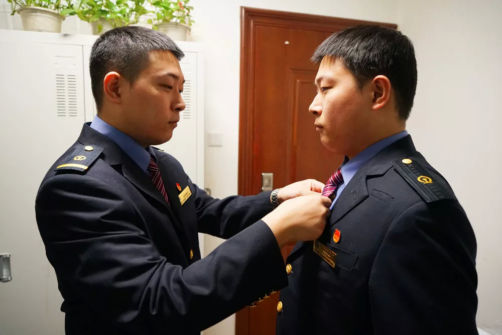 曲春光和曲春明是一对“90后”孪生兄弟,都当过兵,如今都在沈阳局集团公司沈阳客运段沈阳至上海虹桥G1230次列车乘务组工作,哥哥曲春光是列车安全员,弟弟曲春明是列车乘务员。疫情袭来,他们一起前往车队,在“请战书”上按下了红手印。