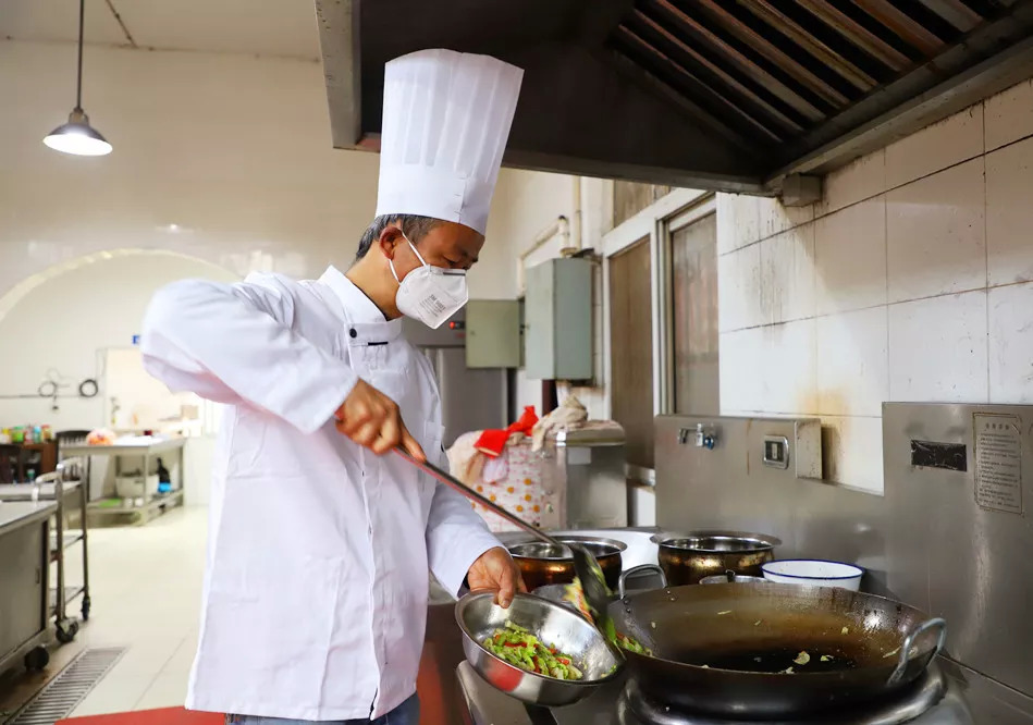 老大郭平,47岁,是广通工电段广通工电车间食堂的一名厨师,在疫情发生后,他每天提前两个小时来到食堂准备食材、卫生消毒,就餐时给所有进出人员测量体温,确保卫生安全。