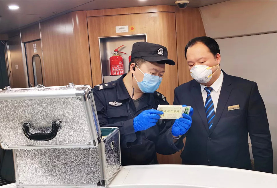 2月4日上午,王浦安正在为接班的职工测量体温。这时听见电台里面哥哥的呼叫:“王浦安有吗?王浦安!”“有,请讲!”王浦安回答道。“我这儿有一名列车上交接下来的发热旅客,你快过来。” “收到!”王浦安赶紧穿好防护服跑步到站台,把旅客带到隔离区。一测体温,37.8摄氏度,王浦安抓紧联系医务人员进一步筛查,最终确定这名旅客没事。
