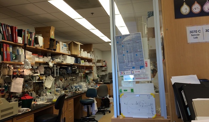现年69岁的桑卡教授身材消瘦,说话不急不缓。这次获得诺贝尔化学奖让他有些意外。周三凌晨5点,通知他获奖的电话便打到家里,他的妻子接了电话后对他说,这个电话非常重要,你要亲自接。“我还在睡觉,(得知这个消息后)显得有些语无伦次,但我还是努力感谢了给我打电话的人,” 桑卡说。当五个小时过后、界面新闻记者在桑卡的办公室问他的获奖感受时,桑卡平静地回答说:“我很高兴,也感到十分荣幸。”