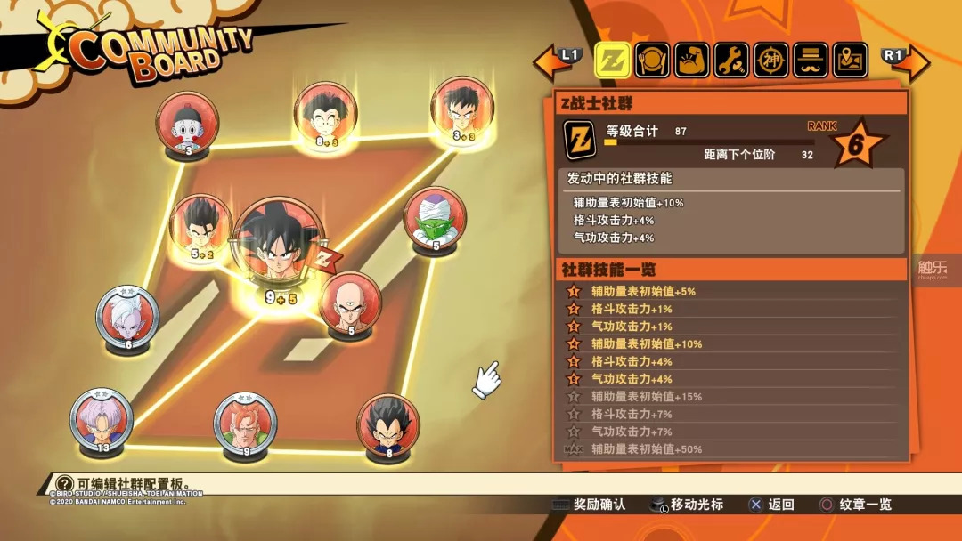 格斗和ARPG两种游戏类型并无高低之分,只是论受众广度,无疑是ARPG更胜一筹。在《七龙珠Z:卡卡洛特》中,即使是难以从格斗游戏得到乐趣的手残党,也能通过数值养成降低游戏难度。游戏存在等级设置,但不会故意卡级,跟着主线走,偶尔做做支线任务,等级完全能跟上。