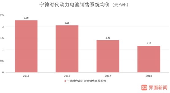 根据宁德时代披露,公司2015年至2018年动力电池销售系统的均价分别为2.28元/Wh、2.06元/Wh、1.41元/Wh和1.16元/Wh,呈下降趋势。近年来,随着动力电池行业产能逐渐释放,供不应求的市场格局发生变化,市场竞争加剧,且受新能源汽车补贴退坡影响,行业整体销售价格有所下降。