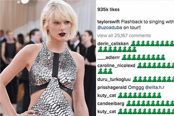 一时间,泰勒从曾经的乖乖女变成了“大骗子”,被指黑心、狡猾、行为卑劣,网络上对她的攻击层出不穷,甚至有大批网友自发涌到她的ins评论区下刷屏蛇的emoji。
