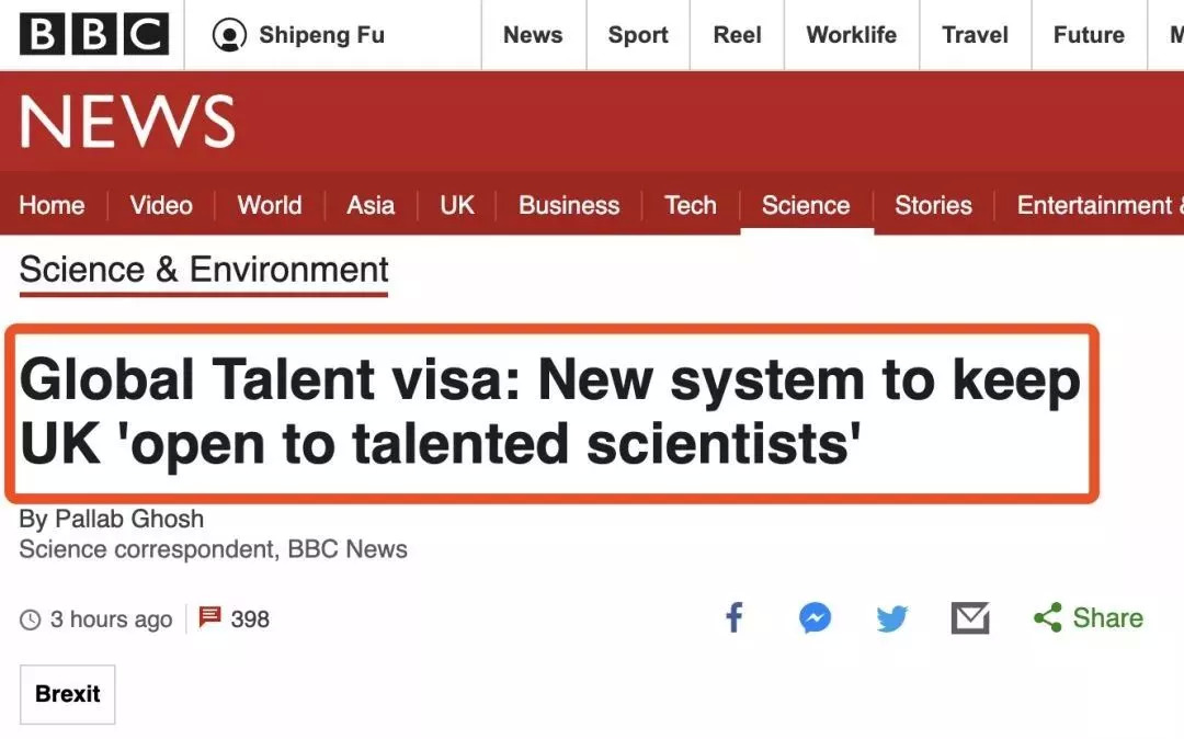 BBC报道全球精英签证: 英国“向有才能的科学家开放”的新制度