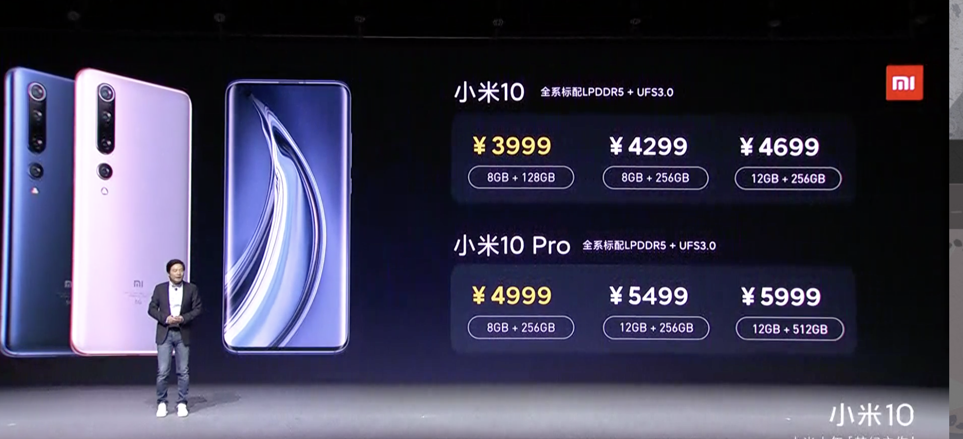 售价上,小米10 Pro 8GB+256GB版本为4999元,12GB+256GB为5499元,顶配版本12GB+512GB为5999元,将会在2月18日全渠道开售。