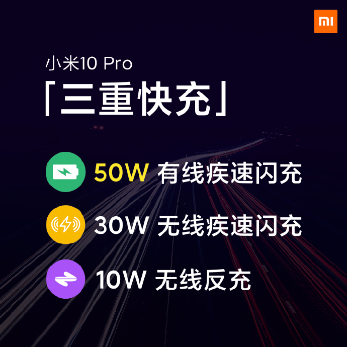 其他方面,小米10 Pro提供AMOLED“原色屏”,峰值亮度达到1200尼特,内置4500mAh电池,有线快充升级至50W,可选星空蓝、珍珠白两种配色。
