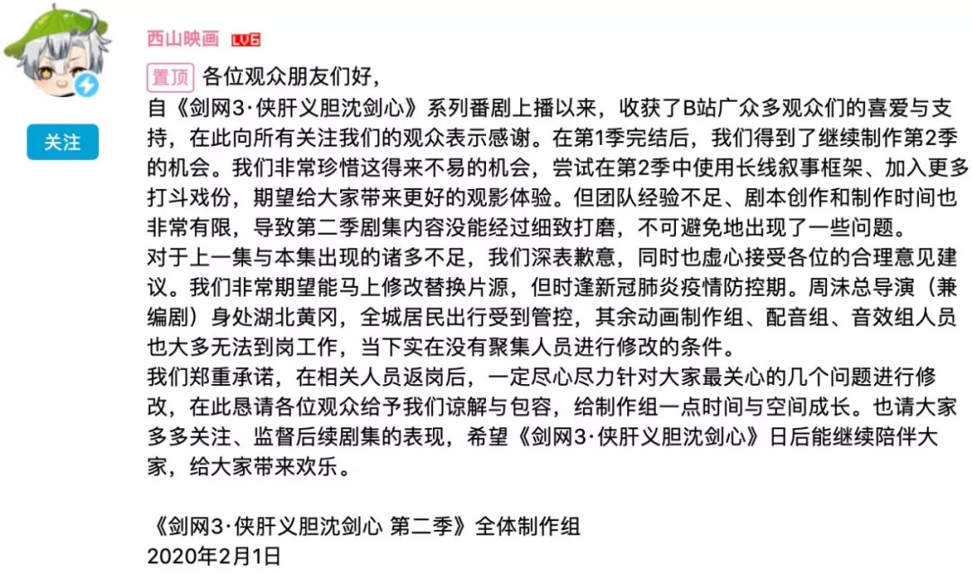 实际上,制作团队也意识到这一问题,然而由于疫情原因,包括导演在内的制作团队无法实现到岗工作,也就无法当即修改。西山映画官方账号也承诺,等到疫情缓解后,目前剧集中存在的Bug会得以修复。