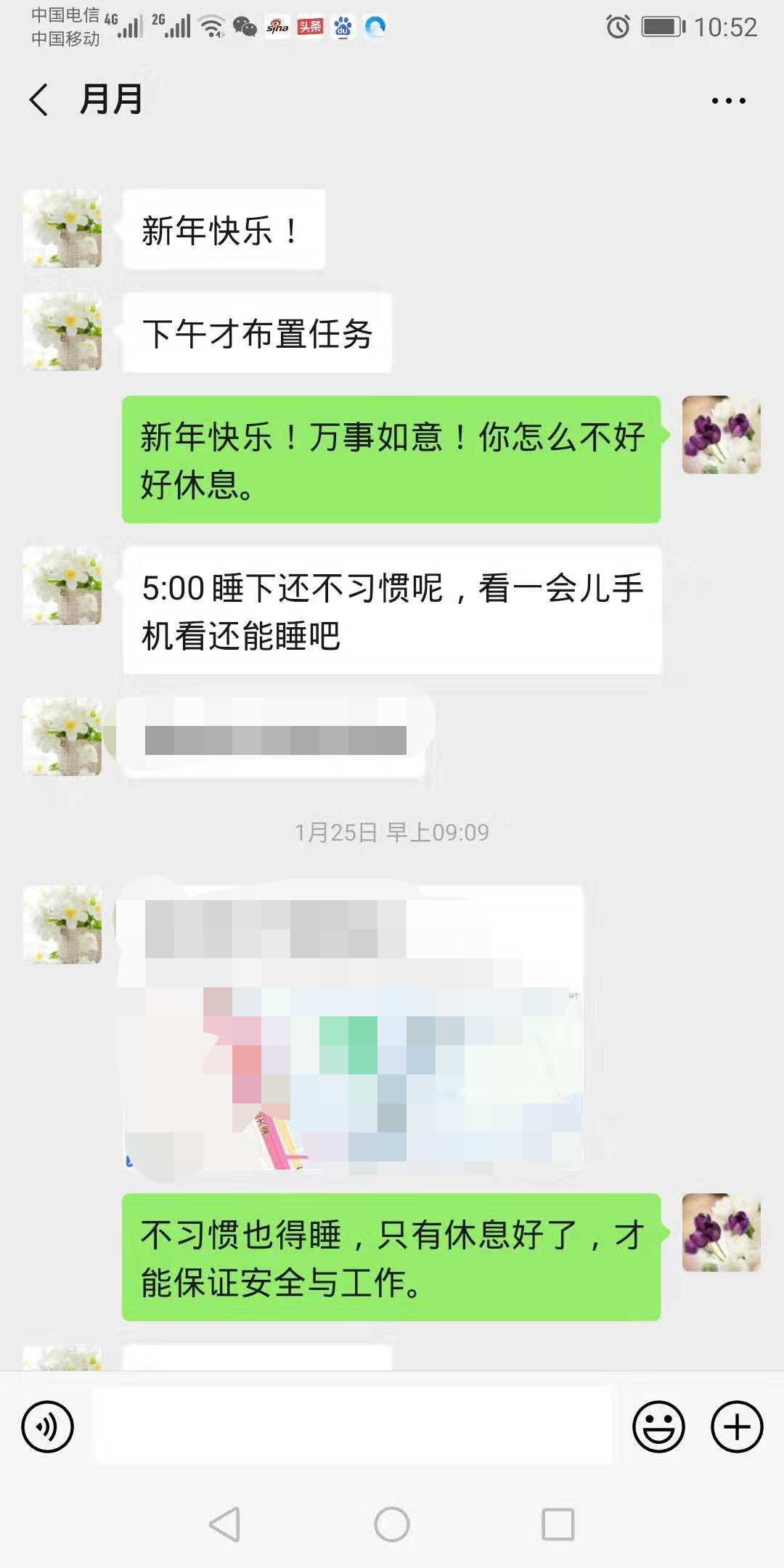 只有休息时,施新中才能回归丈夫角色,给徐越留言送去祝福,而徐越则在休息间隙向他报平安。