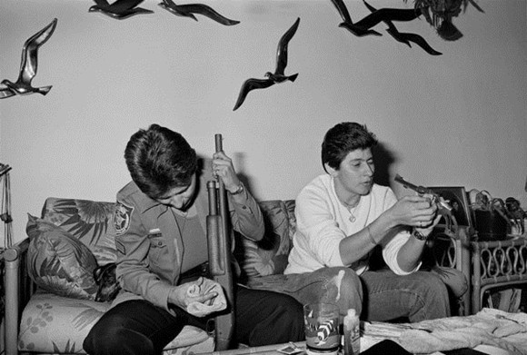 摄影师 Sage Sohier 在1986年为这对爱侣拍下了这张照片,作为她记录同性伴侣生活的长期项目的一部分。20世纪80年代,艾滋病危机刚出现之时,Sohier就致力于传播同性情侣的美好照片,以对抗当时媒体宣传的同性滥交的糟糕形象。她开始为各年龄阶层、有着不同背景、气质各异的男同和女同情侣们拍照,记录下那些不为人知的同性恋爱,展现出它们的多样性与强大的力量。