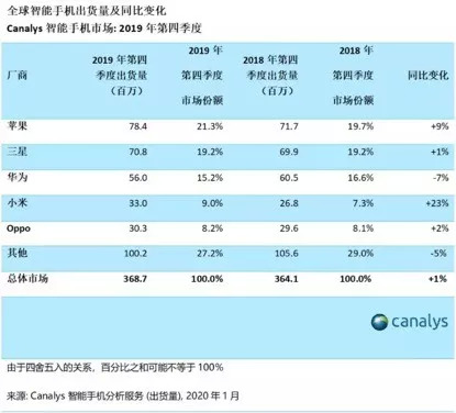 根据市场研究机构Canalys发布的2019年Q4全球智能手机出货量报告来看,仅华为、小米和OPPO加起来就占据了全球30%以上的份额,这已经算是一个不小的体量了。
