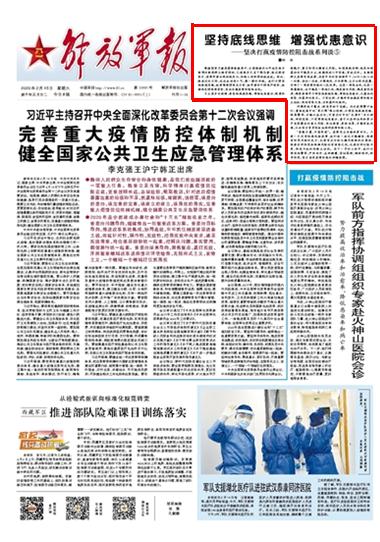 根据国家卫健委最新数据显示,全国除湖北以外地区每日新增的新冠肺炎确诊病例,已连续多天呈下降态势,经过艰苦努力,疫情形势出现积极变化,防控工作取得积极成效。请关注今日出版的《解放军报》的详细报道——