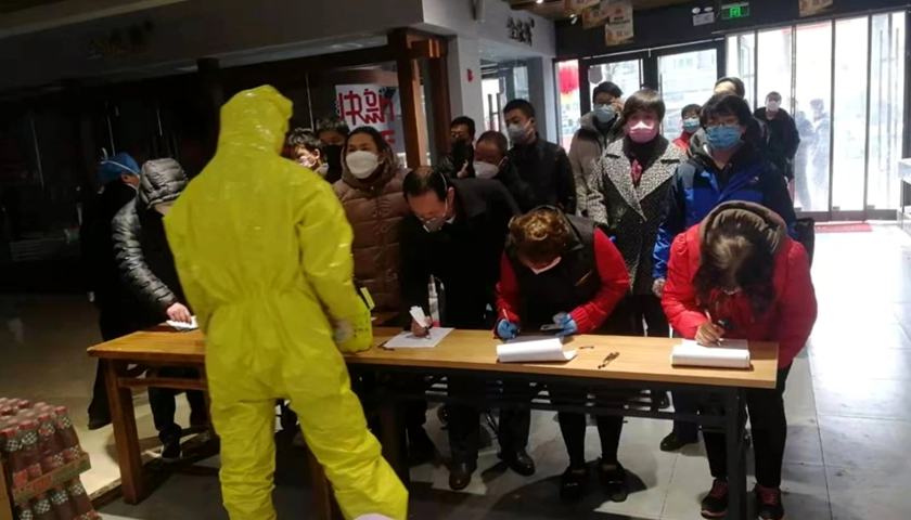 与此同时,各大生鲜超市也严阵以待,顾客进门得过重重检查,戴口罩、测体温、实名登记、消毒等等一系列操作,也因此超市门口均排起了长队,原本人员紧张的超市更显得捉襟见肘。