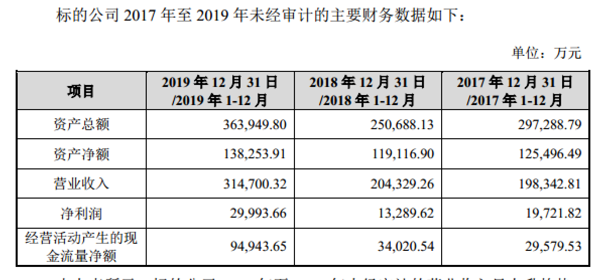 宇通重工2017年至2019年未经审计的净利润分别为19721.82万元、13289.62万元和29993.66万元。