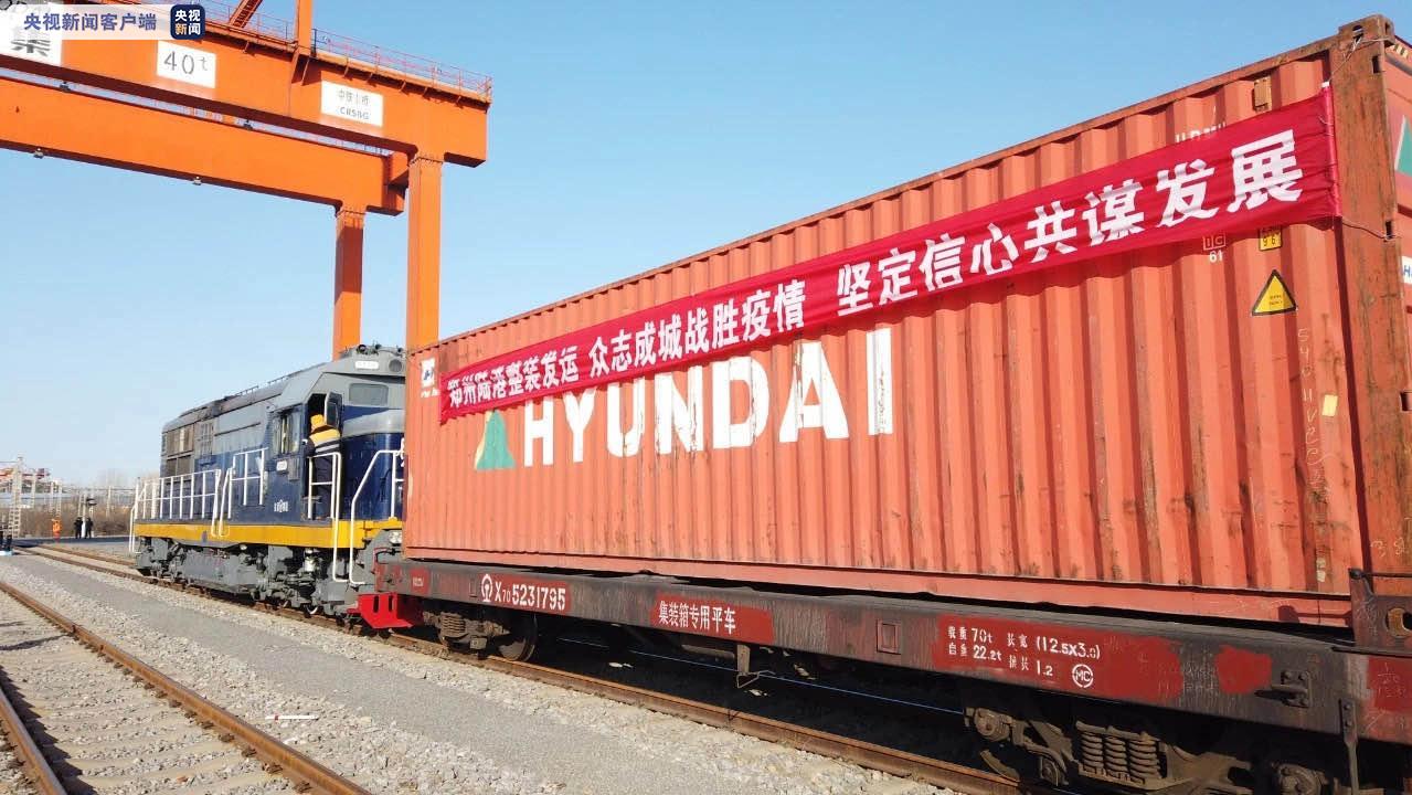2020年2月16日上午9:30,在郑州国际陆港中铁集装箱中心站,中欧班列(郑州)春节后第一趟出口中亚班列从郑州中心站发车。