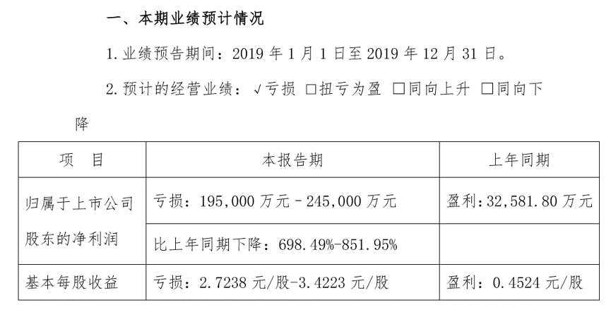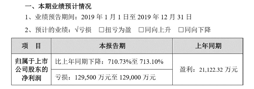 北京文化2019年亏损严重,达到19.5-24.5亿,比上年同期下降698%-851.95%。