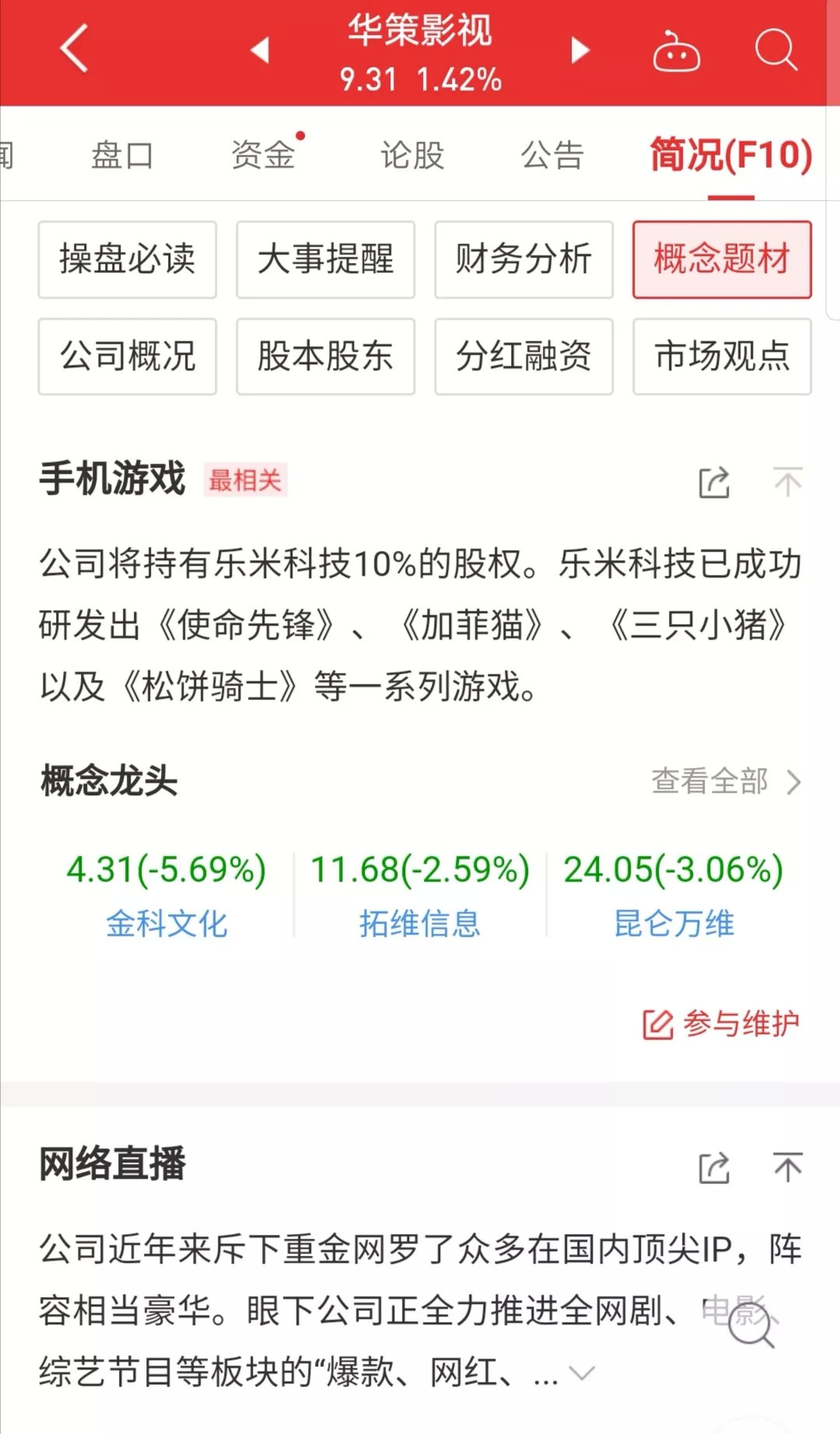 根据公司公告,华策影视早从2017年就入局手游和网络直播。2017年2月公告,公司认购苏州乐米信息科技股份有限公司333.33万股权,认购完成后,华策将持有乐米科技10%的股权,并成为其重要的战略性股东。(乐米科技是手游业新锐公司,专注移动游戏市场,研发出《使命先锋》《加菲猫》《三只小猪》等游戏。)