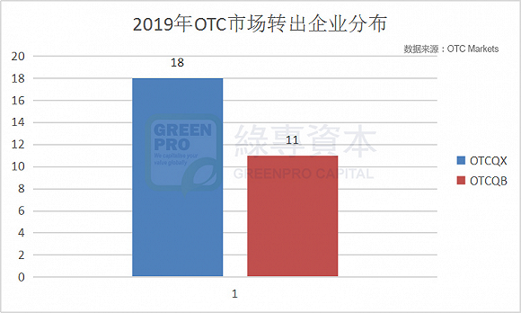 绿专资本统计显示,2019年全年,共有29家OTC企业转入纳斯达克和纽交所,数量同比减少了16家,下降35.55%,这主要受美国政府停摆影响、全球经济放缓等不确定等因素的影响。