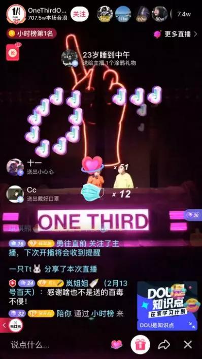 2月9日晚,包括PH、Elements、OneThird等多间知名夜店加入了这场线上蹦迪的狂欢竞赛,著名夜店OneThird将直播地点选在了已经暂停营业近两周的线下门店,开播不到一小时,OT便打破了前一日TAXX的打赏总记录,数小时打赏近两千万音浪,折合人民币一百多万元。