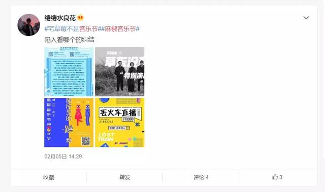 此外,还有滚石在小红书上进行了两日“元宵宅家看LIVE”直播、麻椒音乐节在斗鱼直播了三日线上音乐节等。