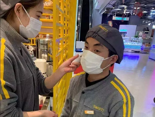 员工到岗前进行健康检查,图片来自@7分甜sweet7