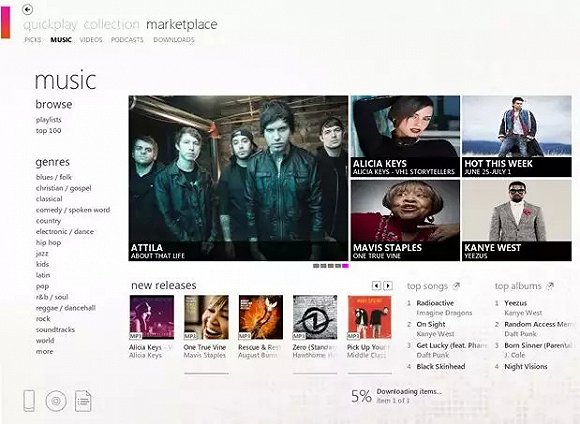 这款播放器其实有不少可圈可点的地方:系统的 UI 设计非常新潮,之后的微软 WP 手机系统界面,就是在 Zune 播放器的基础上改进的。