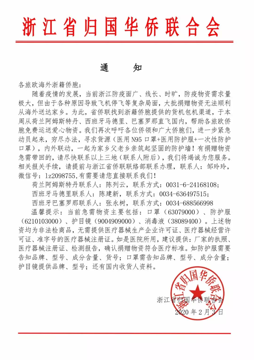 大疫当前争分夺秒。2月3日,一则浙江省归国华侨联合会联系货运包机直飞国内寻求抗疫捐赠物资的通知,将众多欧洲华侨华人凝聚在一起。