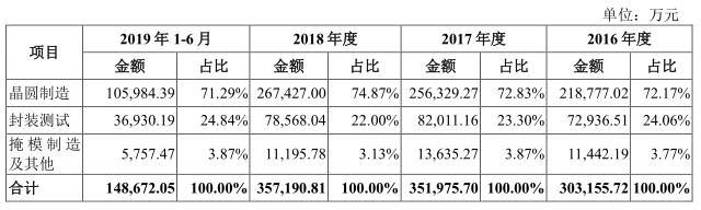 将制造与服务业务进一步拆分,可分为晶圆制造、封装测试、掩模制造及其他三块。由于华润微在历史上进行了一系列并购,其中包括晶圆制造、封测各类生产线,导致华润微在完成自有产品生产后仍有很大富余产能,公司需要将这部分产能释放出去,承接代工业务。