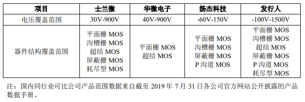 目前,华润微的产品覆盖功率半导体、智能传感器、智能控制MCU三类,其中功率半导体中的MOSFET(金属-氧化物半导体场效应晶体管)是公司最主要的产品,2018年占公司产品与方案业务的60%。招股书中提到,公司是目前国内少数能够提供-100V至1500V范围内低、中、高压全系列MOSFET产品的企业。
