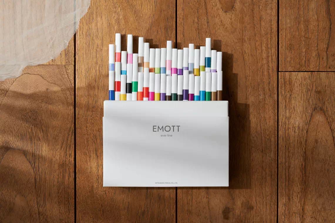 今年,获得大赏的是uni(三菱)2019年发售的新品EMOTT彩色中性笔,从深色到浅色,共40种颜色。